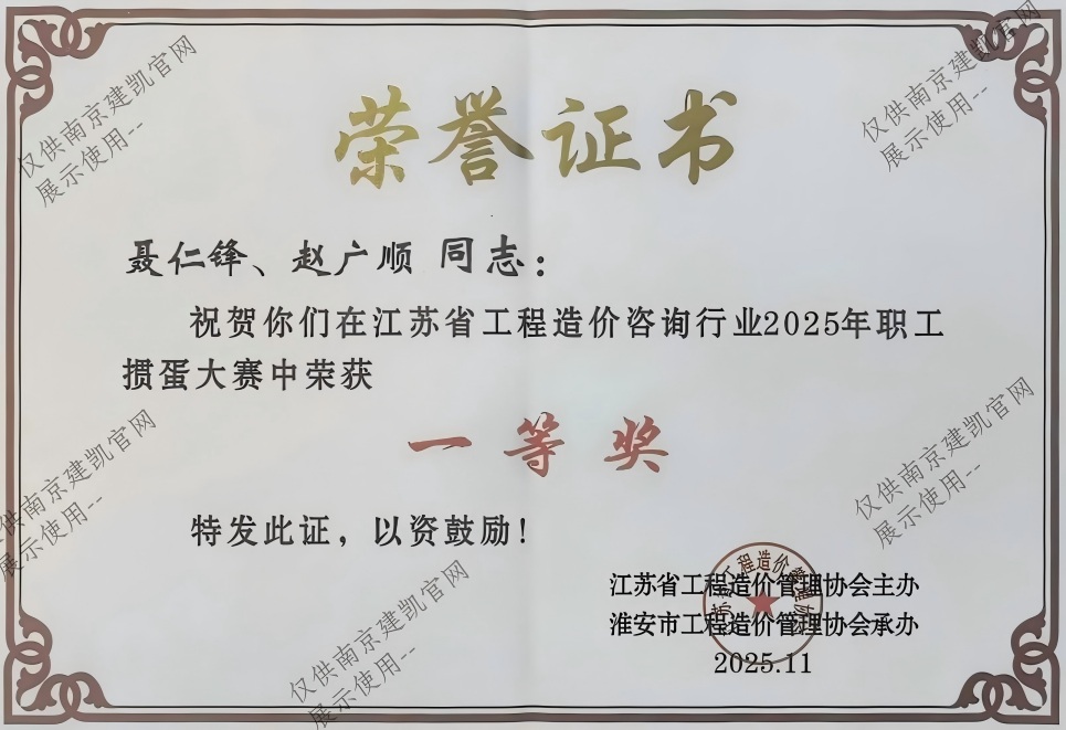熱烈祝賀我司在江蘇省工程造價(jià)咨詢(xún)行業(yè)2025年職工摜蛋大賽中榮獲一等獎(jiǎng)